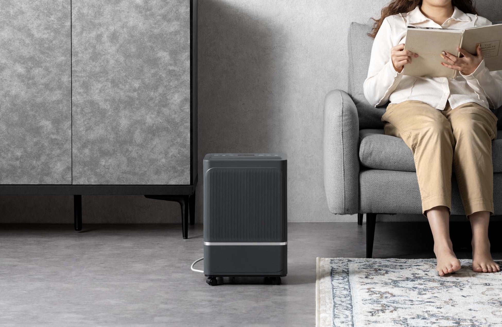 また、他方式と比較して消費電力を抑えられるため、電気代を抑えながら使用できます。日常的に使いやすい省エネ設計で、電気代を気にせず快適な空間づくりをサポートします。さらに、ヒーターを使用しない構造のため、使用中の室温上昇を抑えながら除湿が可能です。ジメジメとした空気をすっきりと整え、快適な室内環境を実現します。