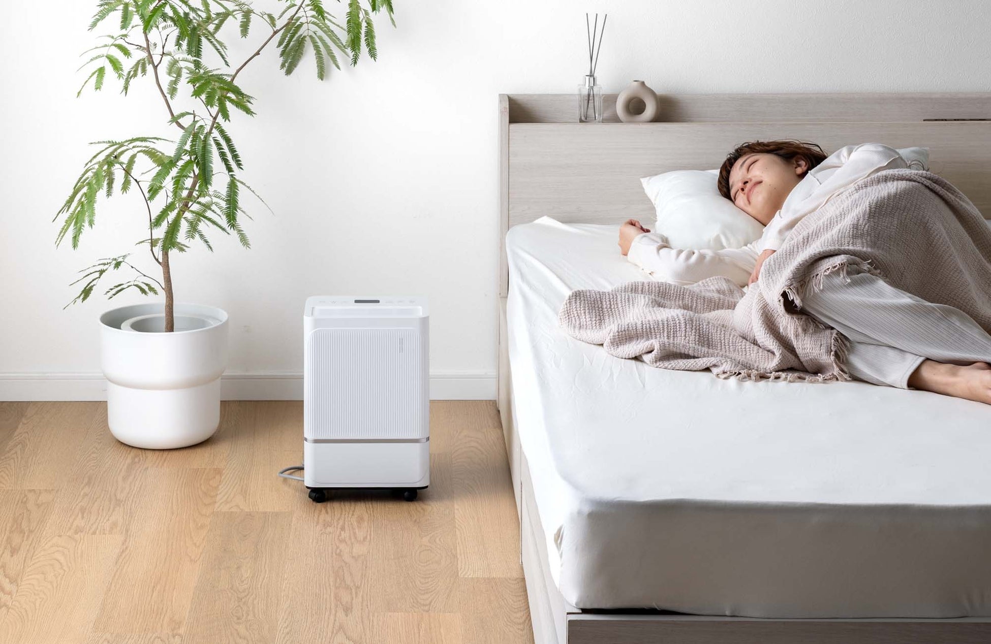 就寝中も眠りを妨げることなく、静かに除湿を行います。