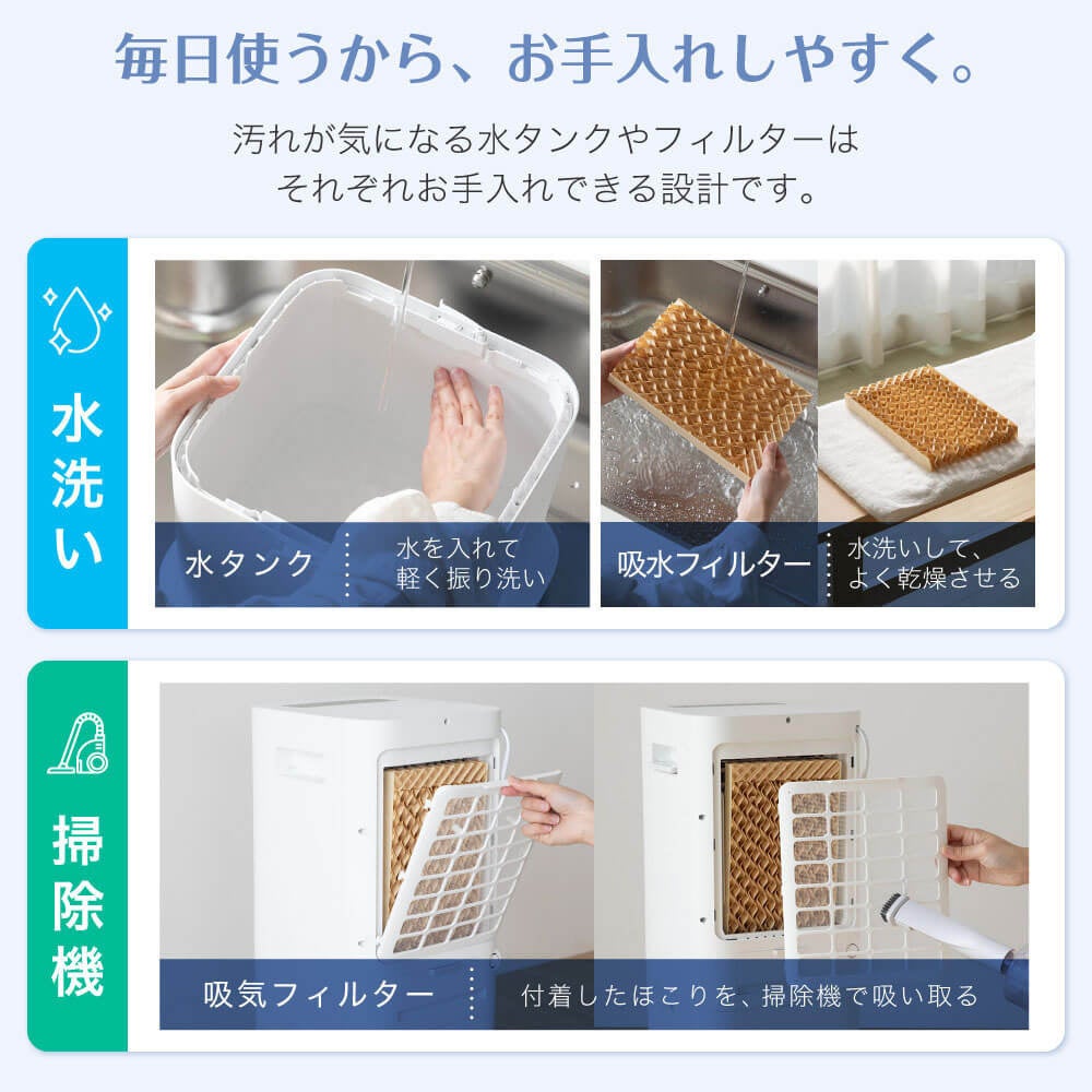 水洗いOKでお手入れしやすい水タンク&フィルター