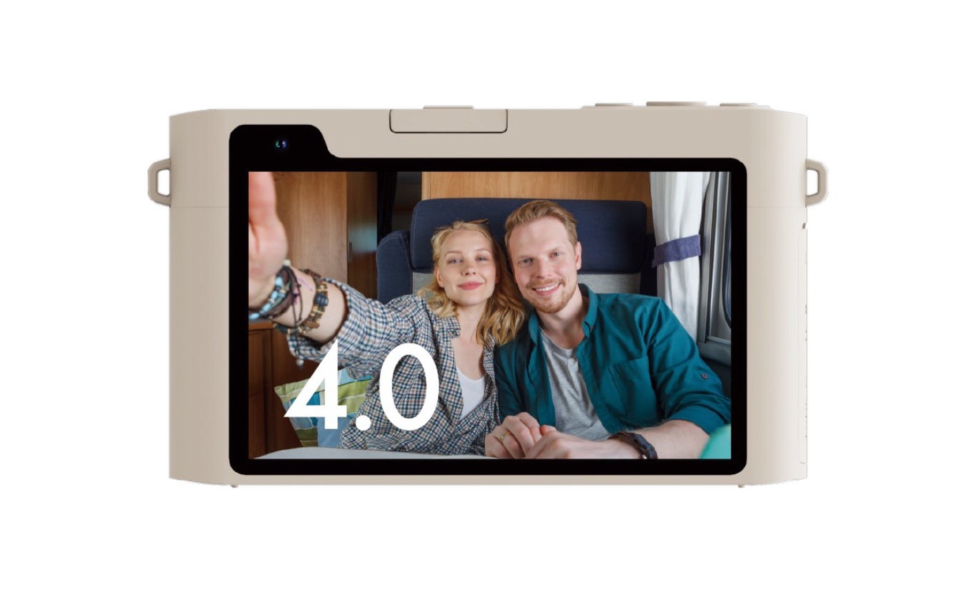本製品は、4.0インチの大画面液晶モニターに加え、本体前後にレンズを備え、自撮りから風景撮影まで幅広いシーンに対応するコンパクトデジタルカメラです。