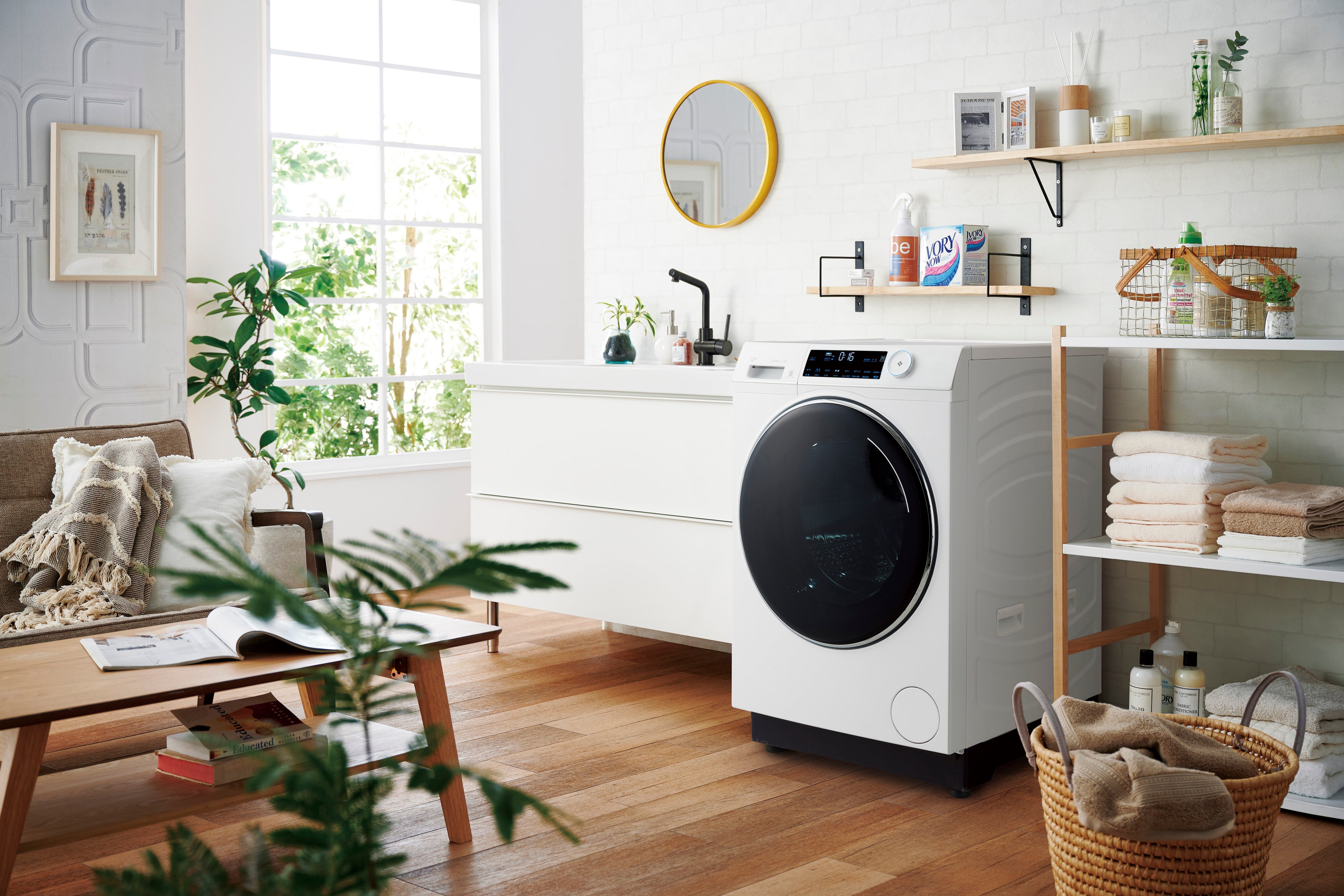 洗濯乾燥機に対して「乾燥に時間がかかり連続して洗濯できない」「乾燥容量が少なく効率が悪い」といった声を背景に、ハイアールは洗濯機と乾燥機を分けて使う新しいランドリースタイルを提案しています。ヒートポンプ式衣類ケア乾燥機「FUWATO(フワト)」は、業界最大容量※4の9.0kgを実現し、週末のまとめ洗いにも対応。