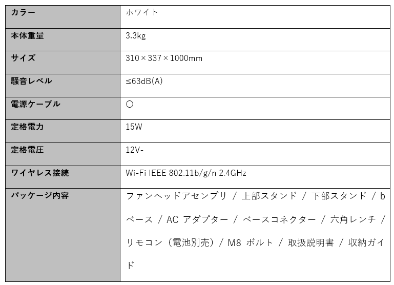 ■Mijia スマート扇風機 Pro Slimスペック概要