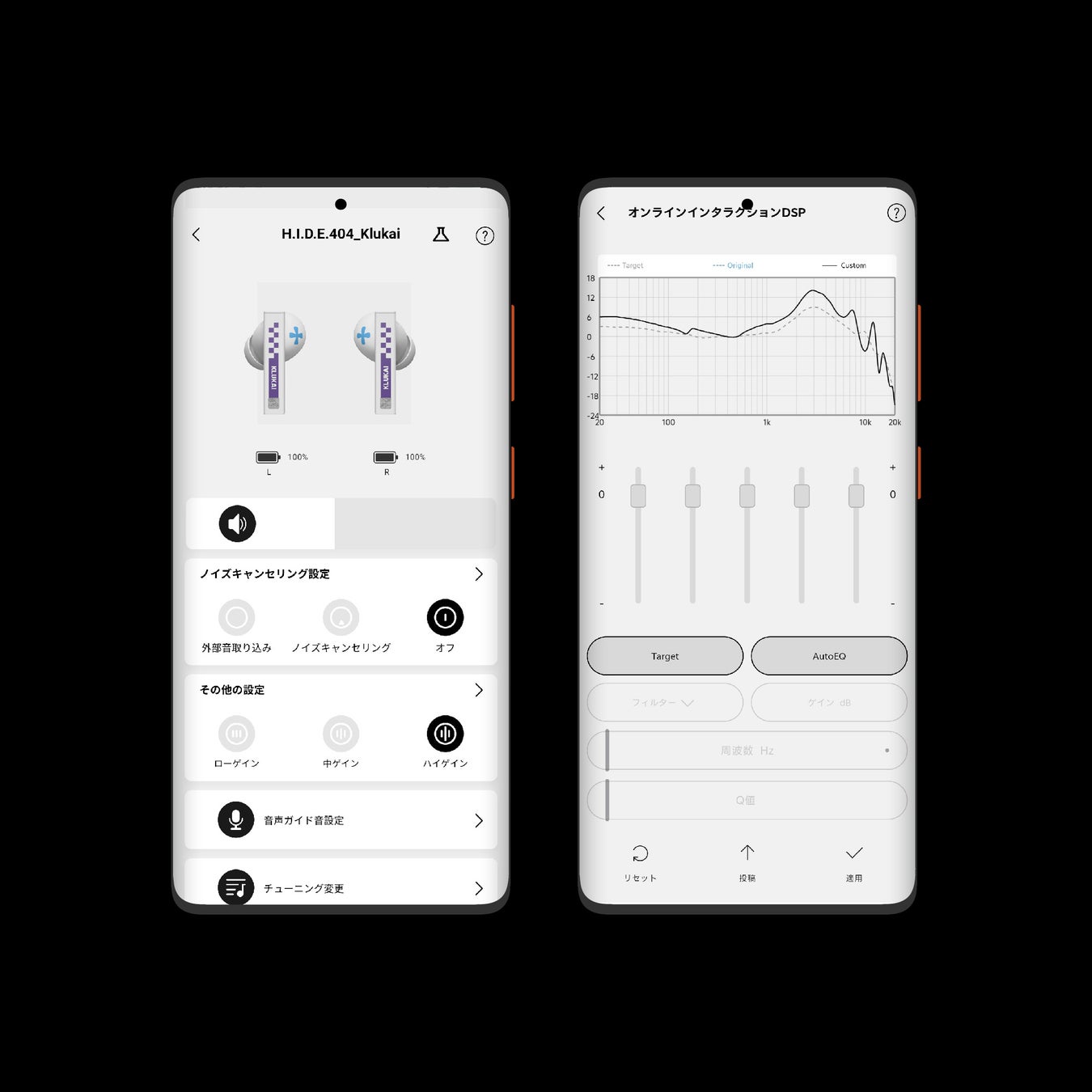 最新バージョンのMOONDROPアプリ「iOS:MOONDROP GLOBAL/Android:MOONDROP」では、「H.I.D.E.404 Klukai」の内蔵DSPを使ったパラメトリックEQの細かな設定が可能。