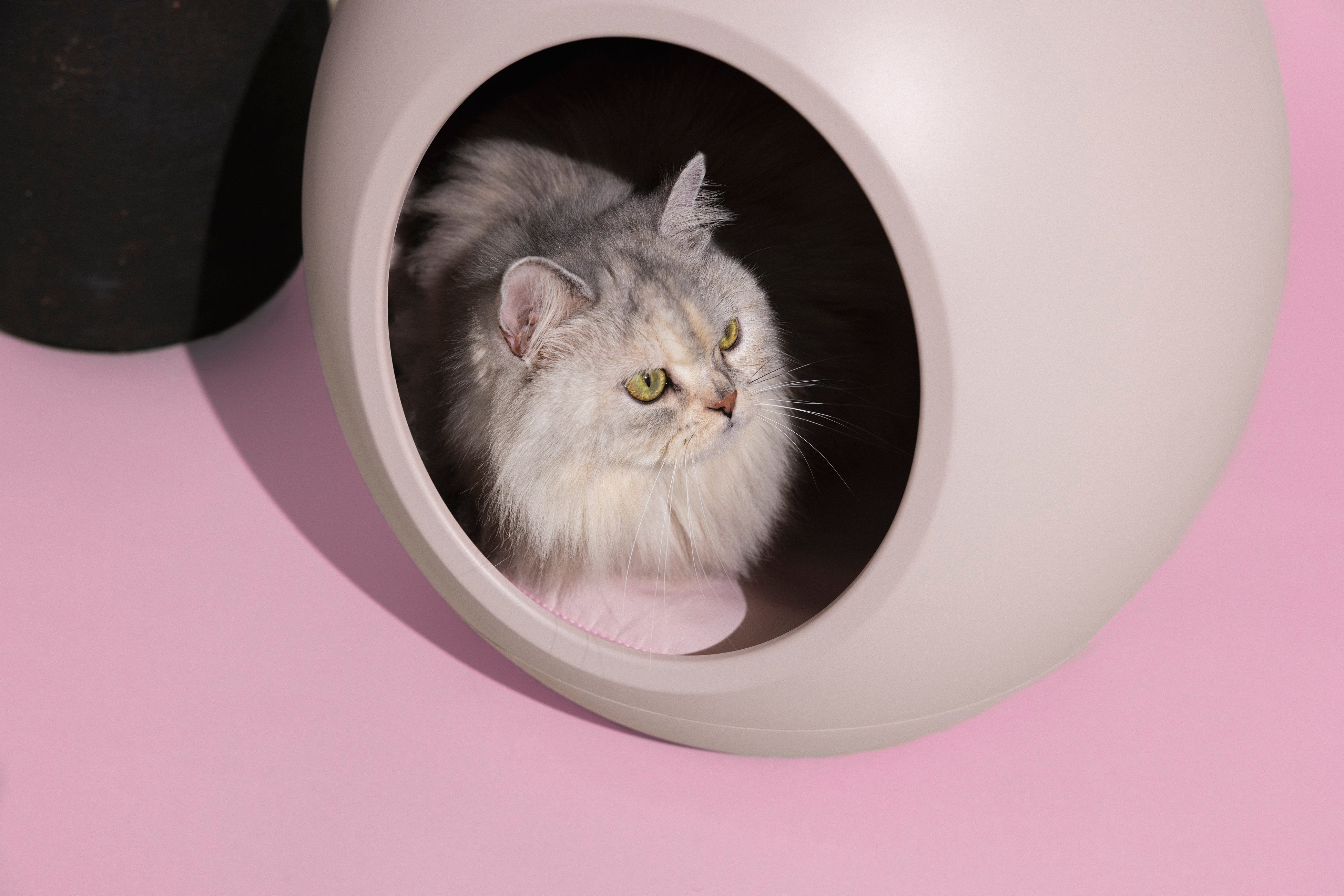 タマゴ型の包み込むようなフォルムが、ペットに安心感を与える心地よい空間を作り出します。