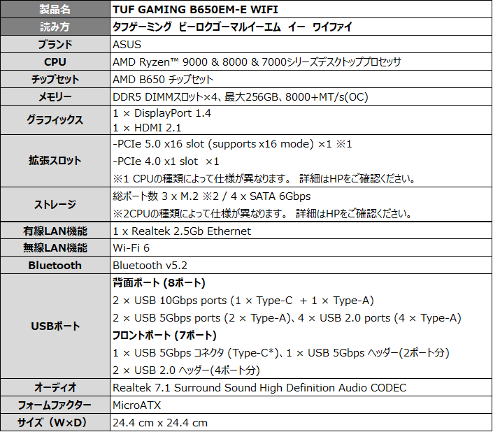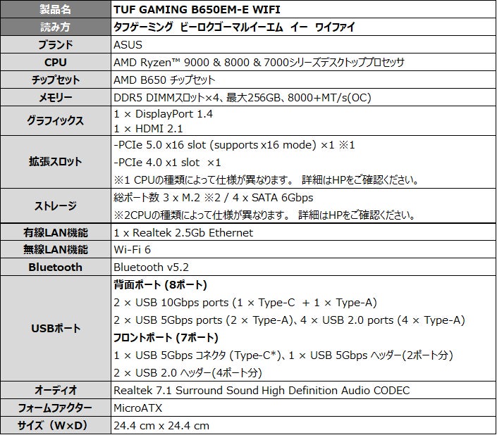 TUF GAMING B650EM-E WIFI