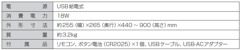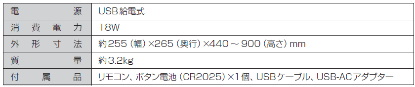 ・USB給電式。ACアダプターやモバイルバッテリーからも給電できる。