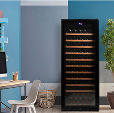 滑らかに引き出せるスライドレール付きの木製棚を採用!127本収納の大容量セラー