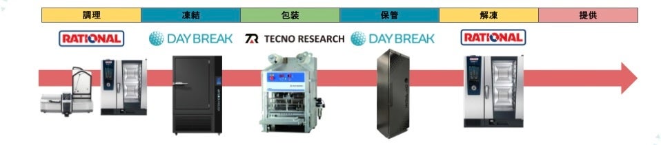 「FOOMA JAPAN 2026」 のデイブレイクブースでは、デイブレイク、ラショナル・ジャパン、テクノリサーチの3社連携のもと、以下の工程を実演します。