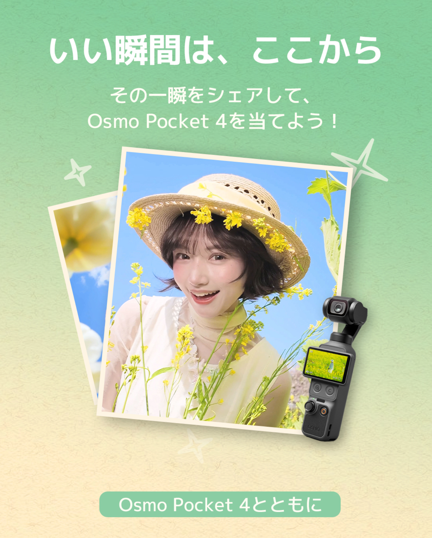 Osmo Pocket 4の発売や新宿駅広告キャンペーン期間に合わせて、ユーザー参加型のUGC(ユーザー生成コンテンツ)キャンペーンも同時開催します。Osmo Pocket 4で撮影した映像をハッシュタグ「#いい瞬間はここから」「#OsmoPocket4」とともにSNSに投稿することでご参加いただけます。新宿駅の広告前で撮影した写真や動画ももちろんご投稿いただけます!