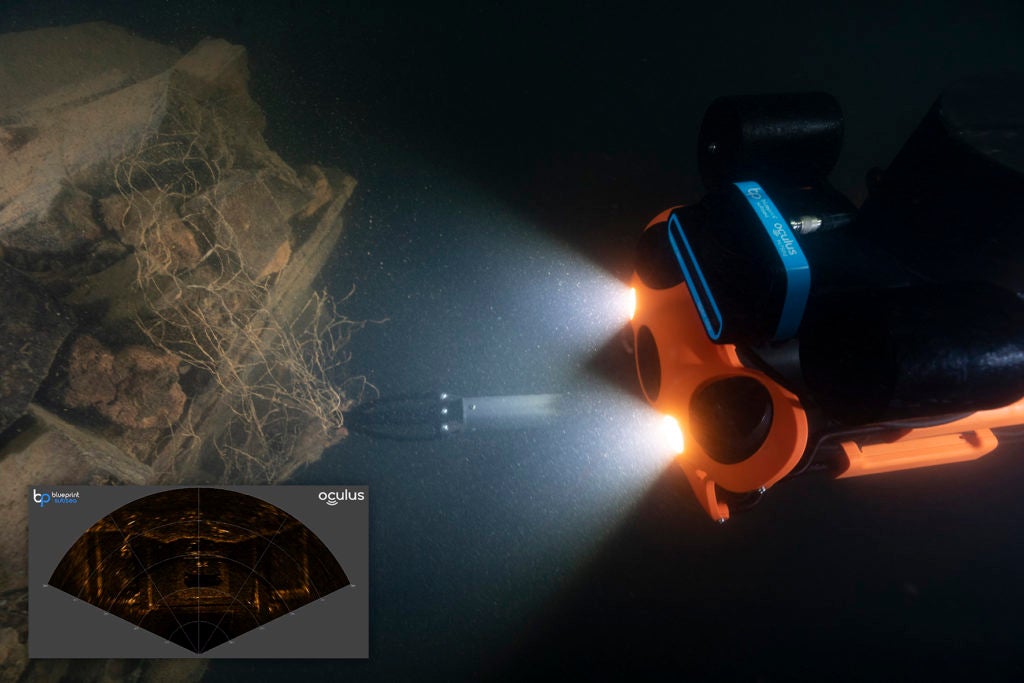 Oculus M750dは、濁水や暗所でも対象物の形状を把握できる高精度マルチビームソナーです。