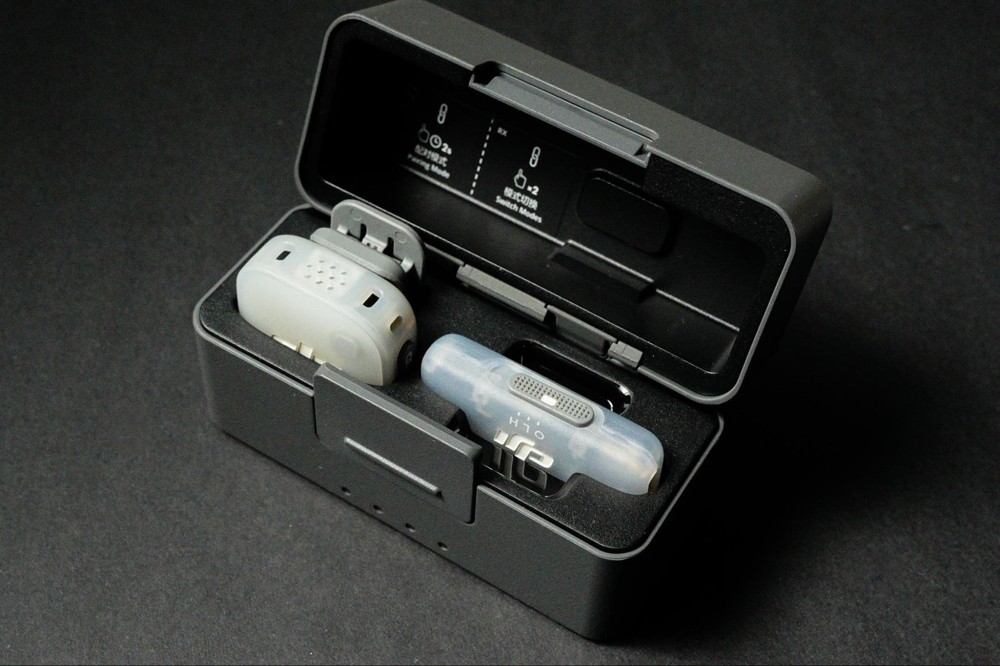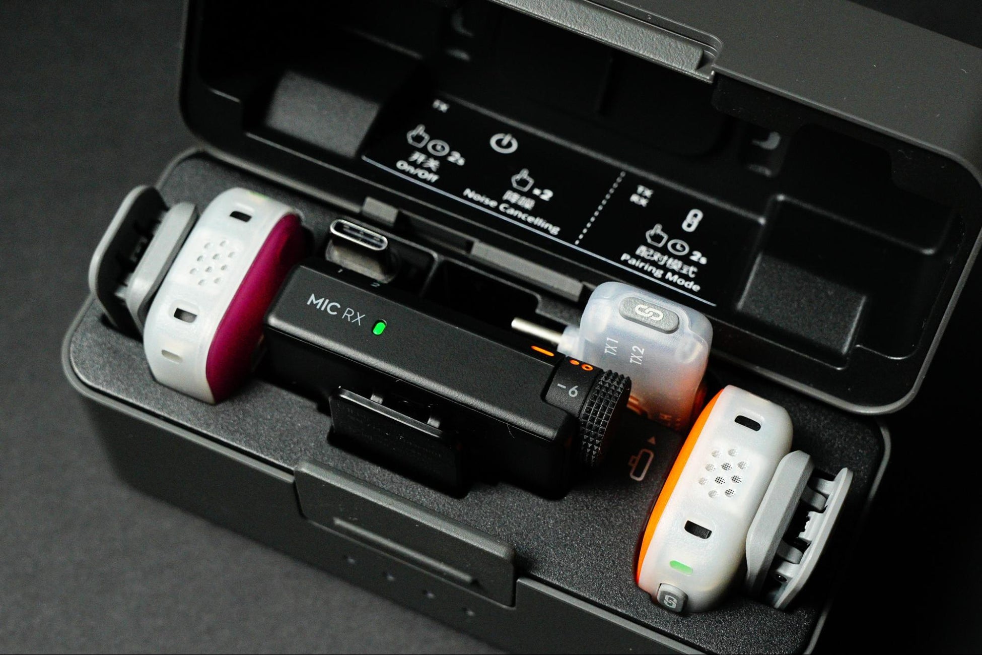 従来の2TX+1RX構成の充電ケースは、モバイルレシーバーも収納できる仕様へと進化しました。