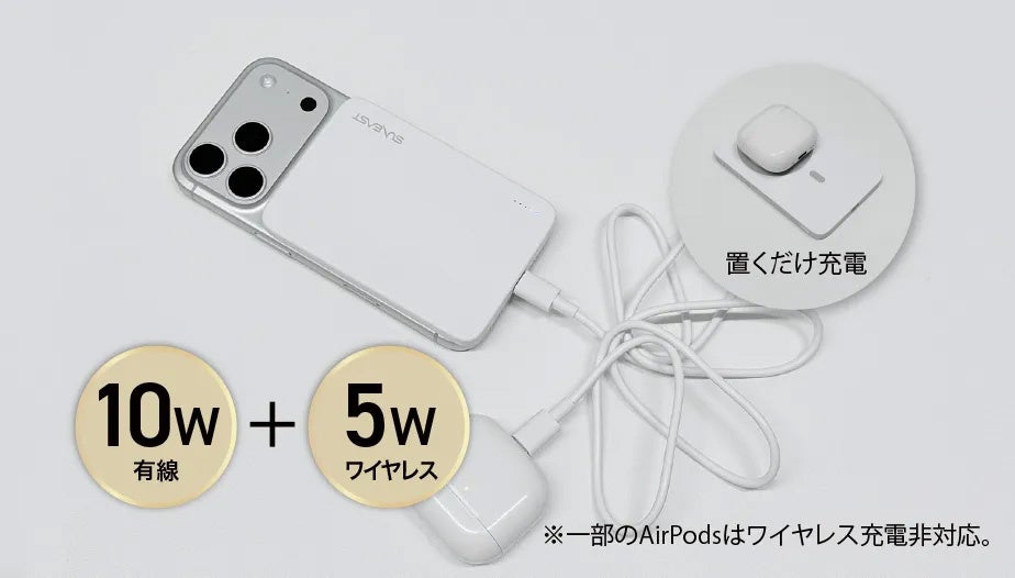 本体を充電しながら、スマートフォンへ**マグネット式ワイヤレス給電(Qi2)**が可能。