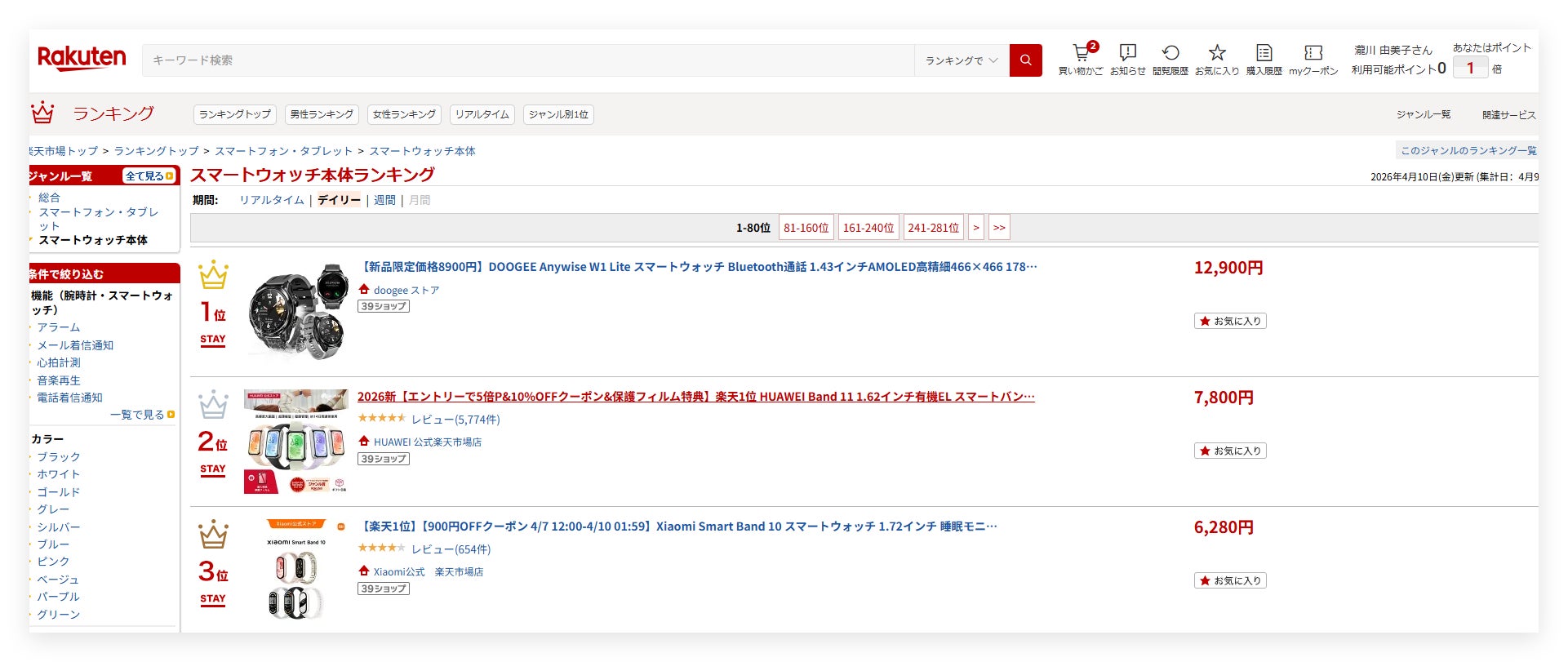 その結果、楽天市場スマートウォッチ本体ランキング1位を獲得し、一時は在庫切れとなるほどの反響を記録しました。